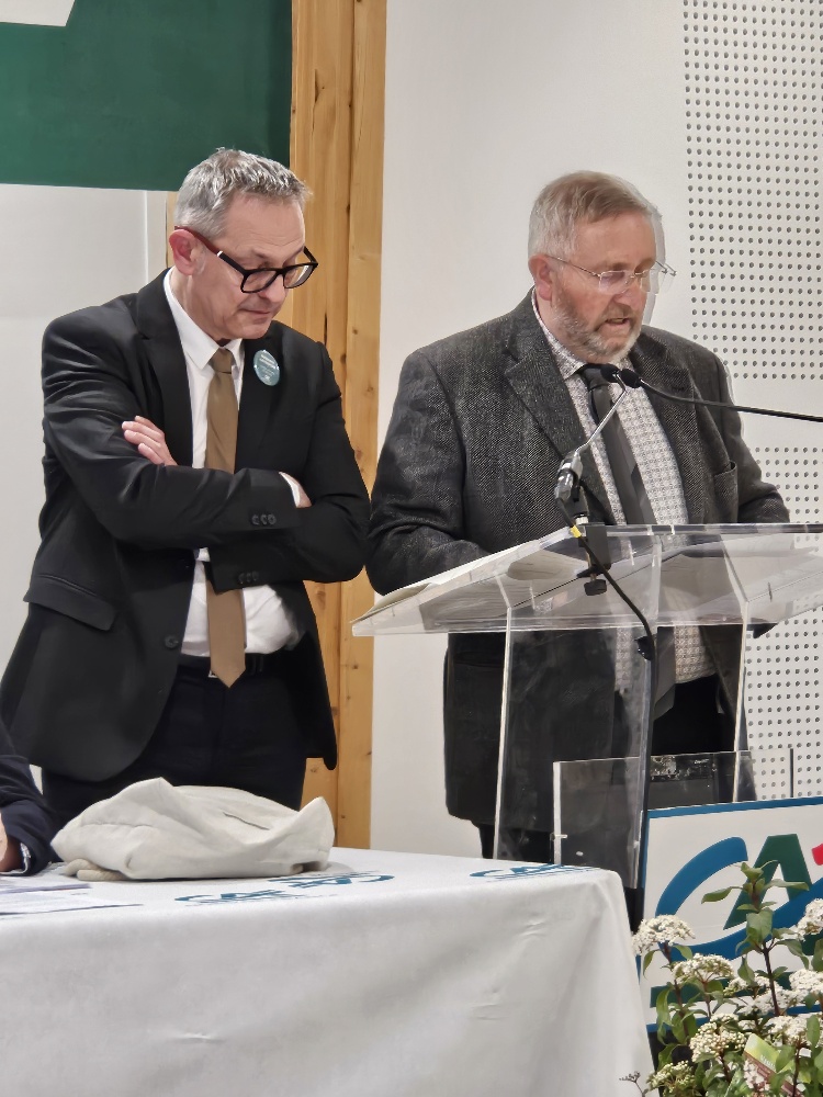 Laurent Martin a souligné « la réalisation d’un projet d’envergure et novateur sur son territoire » relayé par Hugues Joubert qui a mis en avant les qualités RGE et bas carbone du futur siège et sa structure bois dont nous vous parlions dans une MN Chantier dédiée à la scierie il y a quelques mois.