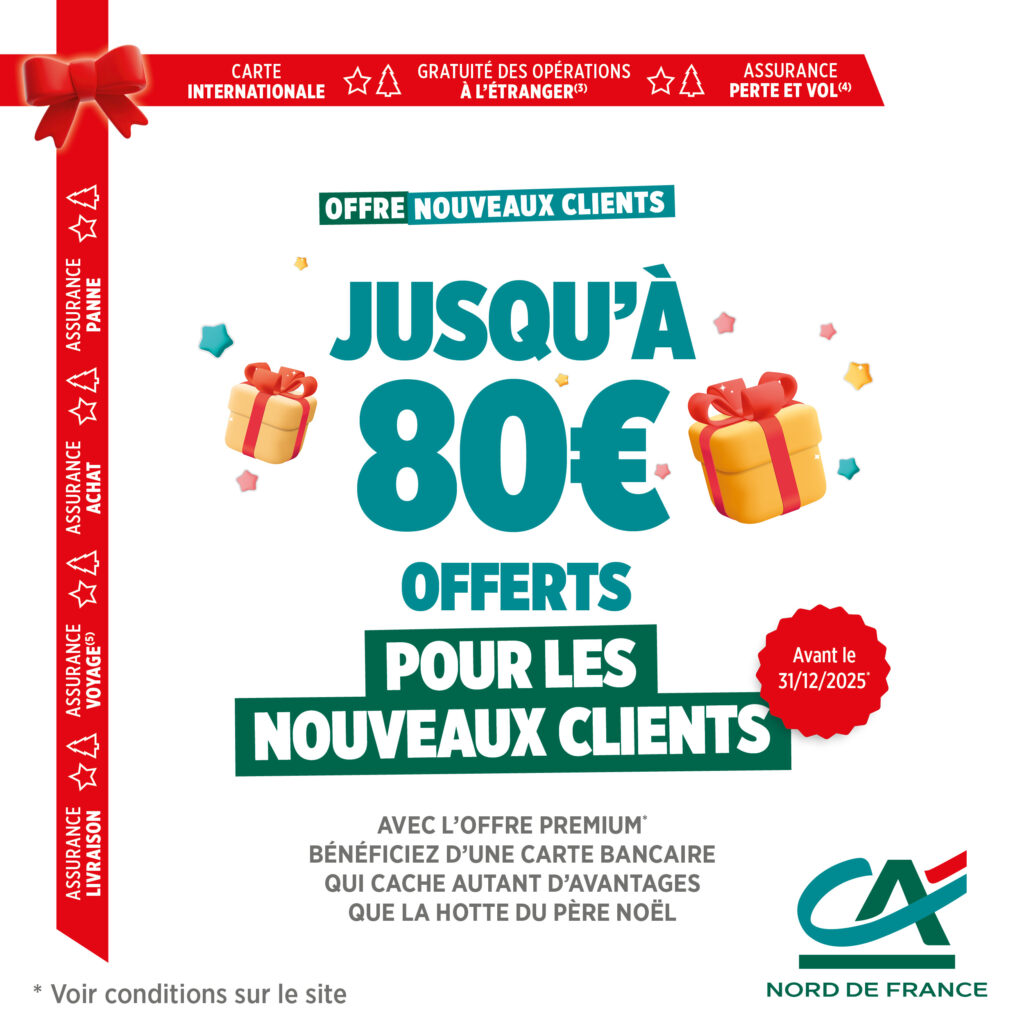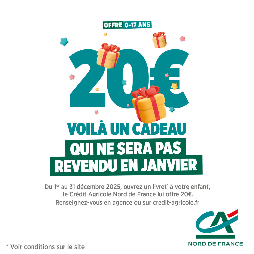La campagne de Noël est officiellement lancée au Crédit Agricole Nord de France. Elle met en avant deux offres destinées à accompagner les familles et attirer de nouveaux clients en cette fin d’année. Pour les 0-17 ans, 20 euros sont offerts à l’ouverture d’un livret. Pour les nouveaux clients, 80 euros sont proposés pour l’ouverture d’un compte avec souscription d’une offre de services.